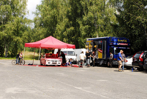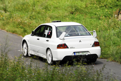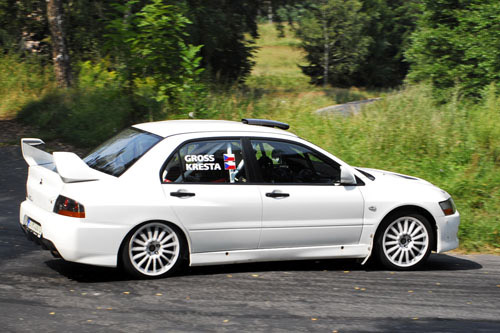 του οδηγώντας ένα Mitsubishi lancer Evo ΙΧ. Ενόψει του αγώνα βρέθηκε