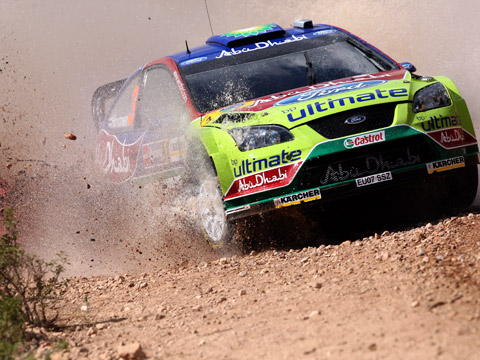εργοστασιακό Ford Focus WRC με τον Mikko Hirvonen να μην μπορεί να