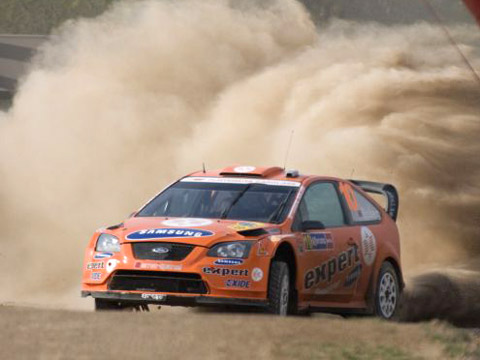 Gigi Galli με το Ford Focus WRC που εγκατέλειψε από κινητήρα στην 4η