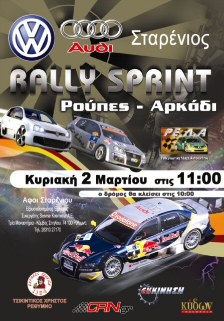 | Πρώτος επίσημος αγώνας για το 2008 ήταν το χωμάτινο ράλλυ σπριντ στην Κόρινθο όπου οι Λάμπρος Κύρκος - Πολυζώης με Μitsubishi Lancer Evo9 (N/4) αναδείχτηκαν νικητές, κάνοντας και στα 2 περάσματα της ε.δ. Αθίκια τον καλύτερο χρόνο.Πίσω τους, στην κατηγορία άνω των 2000, οι Ψύλλος - Κόντος με το Μitsubishi Lancer Evo8 (N/4) ενώ την 3η θέση κατέλαβαν, στην πρώτη τους εμφάνιση στο χώμα, οι Κυρίτσης - Ανδριανόπουλος με Mitsubishi Lancer Evo9 (N/4). |