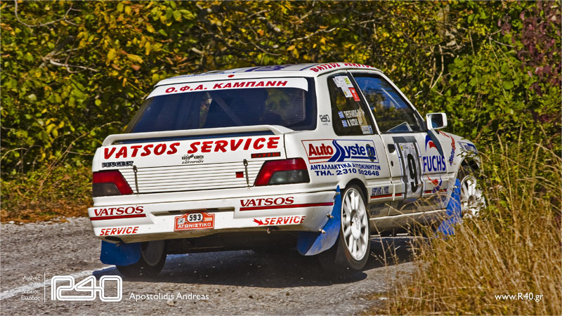 | Κοντά στους νικητές βρέθηκαν και οι Δημήτρης και Θωμάς Μανωλόπουλος με το πάντα εντυπωσιακό Renault 5 Turbo Maxi που οδήγησαν αποτελεσματικά και έφεραν στη δεύτερη θέση της κατηγορίας. Πιο πίσω οι Μπεσλίδης - Νάνος με το δίλιτρο VW Golf III KC σε μια ακομά καλή εμφάνιση κρατώντας και την τρίτη επίδοση γενικής. Στην τέταρτη θέση η εντυπωσιακή Mercedes 2.5 Evo2 των Γκουτζιβελάκη - Κουσουτζή και στην 5η θέση ο νεαρός Δημήτρης Μπατσάρας στον πρώτο του αγώνα, με τον πατέρα του Αποστόλη στο δεξί μπάκετ. 6οι τερμάτισαν οι Πετειναράκης - Κυριακίδου με Renault 5 GT Turbo. Στην κατηγορία των δύο λίτρων είχαμε κάπως λιγότερες συμμετοχές από το συνηθισμένο ενώ δεν συμμετείχε ο "Χριστόφορος" μιας και έχει ήδη εξασφαλίσει το Κύπελλο Β. Ελλάδος στην κατηγορία. Και εδώ τη νίκη πήρε το φαβορί, οι Βάτσος - Θεοφανίδης με Peugeot 309 που επιτέλους σημείωσαν τερματισμό μετά από πολλές ατυχίες στους προηγούμενους αγώνες. Στη δεύτερη θέση ανέβηκαν οι Λάκης - Καμζελής με Opel Manta και το βάθρο συμπλήρωσαν οι επίσης πισωκίνητοι Λ. Σκουλαριώτης - Αλ. Σκουλαριώτης με BMW 320 is. Την 4η θέση πήραν οι Πατσιάς - Αγγουράς με Renault Clio Williams και στην 5η θέση βρέθηκαν οι Σώκος - Καστανιώτης με Seat Ibiza Gti. Εδώ πρέπει να σημειώσουμε το σοβαρό ατύχημα των Κοσμίδη - Βασιλειάδη που έχασαν τον έλεγχο του Peugeot 306 στο σικέϊν επιβράδυνσης που στήθηκε από την οργάνωση και είχε ως αποτέλεσμα την πτώση του αυτοκινήτου στο γκρεμό σε βάθος 150 μέτρων! Ο αγώνας διακόπηκε άμεσα ώστε να απεγκλωβιστεί το πλήρωμα και πέρασε αρκετή ώρα μέχρι να ανέβουν επάνω στο δρόμο που τους περίμενε το ασθενοφόρο για να τους μεταφέρει στο Νοσοκομείο Δράμας. Ευτυχώς ο οδηγός δεν είχε τελικά κάποιο σπασμένο κόκκαλο ενώ ο συνοδηγός είχε ένα κόψιμο στο χέρι. Για το αυτοκίνητο ούτε λόγος να γίνεται για να βγει από το σημείο και εδώ έρχεται το εύλογο ερώτημα για το σημείο που τοποθετήθηκε το σικέϊν επιβράδυνσης. Είναι τόσο δύσκολο να σκεφτεί κάποιος ότι υπάρχει περίπτωση ατυχήματος ακριβώς επειδή υπάρχει εκεί το τεχνητό εμπόδιο ? Συνεχίζουμε με την κατηγορία των 1600 όπου είχε συγκεντρώσει πολλές αξιόλογες συμμετοχές και αναμενόταν η μάχη της ημέρας. Νικητές αναδείχθηκαν οι Παπαδόπουλος - Τσιγγινές με Peugeot 106 σε μια εξαίσια εμφάνιση που σημείωσαν και τον 5ο χρόνο γενικής κατάταξης. Στη δεύτερη θέση τερμάτισαν οι Καραβασίλης - Κολλαράς με Peugeot 106 παρά το ότι είχαν και μια μικρή επαφή στο πρώτο σκέλος. Σε λίγες μέρες θα έχετε την ευκαιρία να γνωρίσετε καλύτερα το νέο αυτό πλήρωμα από τη Χαλκιδική μιας και κέρδισε τη διάκριση "Πλήρωμα του αγώνα" στο ΔΕΘ. Στην τρίτη θέση ένα ακόμα πλήρωμα με 106 από τη Χαλκιδική που έχει διακριθεί και σαν "Πλήρωμα του αγώνα", οι Σανιδάς - Τριανταφύλου. 4οι οι Ευθυμιάδης - Παπανικολάου με Peugeot 106, 5οι οι Μήτρακας - Γκίτσος με Citroen Saxo με διαφορά 2" και στην 6η θέση οι Κάκαρης - Κωνσταντινίδης με Citroen Saxo. Ακολουθούν οι Χριστοφορίδης - Μακινατζής με Peugeot 106 και στην 8η θέση οι Μίχογλου - Ζαγούρης που εμφανίστηκαν με Peugeot 205 GTi και πιο πίσω οι Μάτσος - Κωνσταντινίδης Β. με Peugeot 106. Σημαντική εγκατάλειψη από μηχανικό πρόβλημα είχε ο Παρταλιός με το Citroen Saxo που μένει στην ίδια βαθμολογική διαφορά με τον πρωτοπόρο της βαθμολογίας Καμπουγιάννη. Στα 1400 επικράτησαν με άνεση οι Βραχάτης - Φαρσούλης με Toytota Yaris που προηγούνται και στη βαθμολογία των 1400. Η μάχη της ημέρας έγινε για τη δεύτερη θέση ανάμεσα σε 3 πληρώματα που παίζανε στα δευτερόλεπτα και στα δύο σκέλη. Τη δεύτε