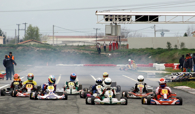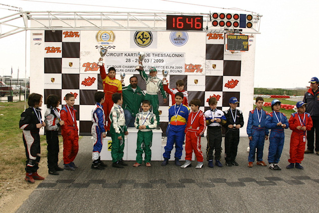 Στην Μίνι ο Αλέξανδρος Ντριο πέτυχε το απόλυτο και έμεινε χωρίς συγκάτοικο στην κορυφή της βαθμολογίας. Στον πρώτο τελικό ο οδηγός της PRT άφησε άνετα πίσω του τον Χρήστο Σαγανά της Athens Kart Shop που ασχολήθηκε περισσότερο με τον έλεγχο των Ψαλτάκη και Ευμορφόπουλου που τον ακολούθησαν παρά με το κυνήγι του νικητή. Στον δεύτερο τελικό ο Ντριο είχε σαφώς πιο δύσκολο έργο αφού δέχτηκε ασφυκτική πίεση από τον Στέφανο Ευμορφόπουλο. Οι δυο νεαροί άλλαξαν αρκετές φορές θέσεις όμως ο Θεσσαλονικιός οδηγός της Speed Force δεν έμελλε να γευτεί τη χαρά μιας νίκης εντός έδρας. Το βάθρο συμπλήρωσε ο Σαγανάς που πλέον βρίσκεται οκτώ βαθμούς πίσω από τον Ντριο (57 βαθμοί) στη βαθμολογία. Οι δυο τους βέβαια έχουν αποσπαστεί από τους Μάρκο Ψαλτάκη (35 βαθμοί) και Νίκο Καϊάφα (33 βαθμοί) της Grillakis Racing που ακολουθούν.