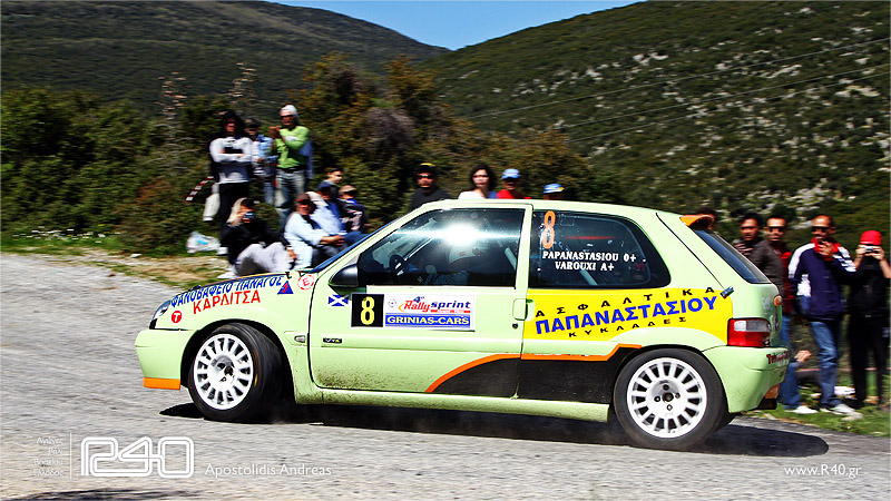 Στην αμέσως επόμενη κατηγορία έως 1600 κ.εκ., την πρώτη θέση κατέλαβαν οι Παπαναστασίου/Βαρουξή με Citroen Saxo VTS, με δεύτερους τους Γάτσος/Αμαραντίδου με Citroen Saxo VTS, οι οποίοι "ξύπνησαν" αργά και η όποια προσπάθεια στο δεύτερο σκέλος δεν έφερε αποτέλεσμα. Τους ακολούθησαν οι Πλακουτσής/Παναγιωτακόπουλος, με Peugeot 205 Rallye.