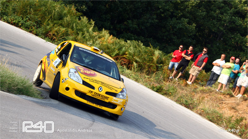 Αντιθέτως η μάχη για την 2η θέση της γενικής ήταν κάτι παραπάνω από έντονη και κρίθηκε στην προτελευταία ε.δ. του αγώνα. Οι Κοσμόπουλος/Ευτυχιάδης με το Renault Clio R3 Maxi Evo και οι Ζάχος/Ζάχος με το Renault Clio RS Ragnotti κινήθηκαν πολύ γρήγορα σε όλη την διάρκεια του αγώνα, αλλά ο Κοσμόπουλος έκανε την διαφορά στην 4η ε.δ. όπου γράφοντας έναν πολύ καλό χρόνο κατάφερε να ανοίξει αρκετά την διαφορά υπέρ του και να φτάσει στην επικράτηση για την 2η θέση της γενικής αλλά και την 1η της F2. 9''51 πίσω του τερμάτισε τελικά ο Ζάχος που ανέβηκε στο τελευταίο σκαλί του πόντιουμ και πήρε την 2η θέση στην F2, αντιμετωπίζοντας και πρόβλημα στην μετάδοση στο 2ο loop.