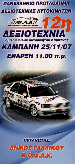 Στις 25 Νοεμβρίου 2007 διοργανώνεται η εξ' αναβολής 12η Δεξιοτεχνία αυτοκινήτων του ΟΦΑ Καμπάνη, αγώνας που προσμετράται στο Κύπελλο Δεξιοτεχνιών Βορείου Ελλάδος και γίνεται με συνδιοργανωτή το Δήμο Γαλλικού.