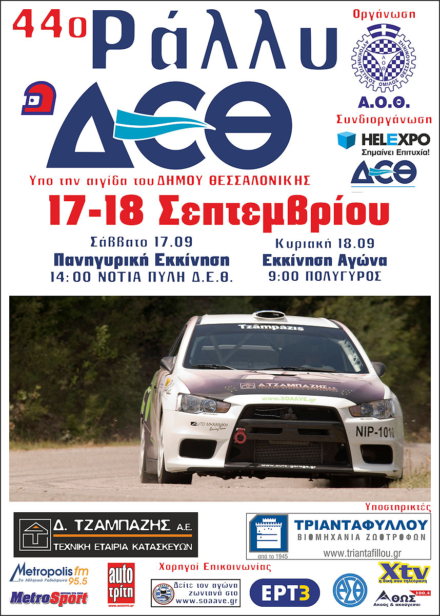Oλοκληρώθηκε χθες το απόγευμα το 44ο Ράλλυ ΔΕΘ, ο 3ος γύρος του Πανελληνίου Πρωταθλήματος Ράλλυ, που διεξήχθη από την λέσχη του ΑΟΘ στις γνωστές ασφάλτινες ε.δ. της Χαλκιδικής. Ο καιρός ήταν σύμμαχος της οργάνωσης με αποτέλεσμα σημαντικός αριθμός θεατών να παρακολουθήσουν τον αγώνα. Στα αγωνιστικά, πολύ νωρίς, οι Κύρκος/Πολυζώης με το Mitsubishi Lancer RS Evolution IX έδειξαν ότι αυτοί θα έχουν τον πρώτο λόγο όσον αφορά την επικράτηση στην γενική καθώς μετά τις 2 πρώτες ε.δ. του αγώνα άνοιξαν σημαντική διαφορά από τα πληρώματα που τους ακολουθούσαν. Αυτό δεν άλλαξε ούτε στην συνέχεια καθώς το πλήρωμα δεν χρειάστηκε να ανεβάσει ρυθμό και γράφοντας σχεδόν τους ίδιους χρόνους στις επαναλήψεις των ε.δ. έφτασαν σε μια άνετη επικράτηση, κερδίζοντας συνολικά τις 3 από τις 5 ε.δ. του αγώνα, που τους δίνει σημαντικό πλέον προβάδισμα για την μάχη του φετινού τίτλου.