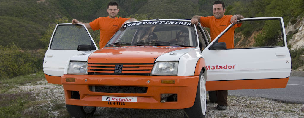 Στο ράλι Θερμαϊκού, που ήταν ο δεύτερος αγώνας για το Βορείου Ελλάδος, είχαμε την συνέχεια του "πληρώματος του αγώνα". Αν και οι υποψήφιοι ήταν αρκετοί, ο τίτλος πήγε στο πλήρωμα με το λευκό-πορτοκαλί 205, τους Γιάννη και Βαγγέλη Κωνσταντινίδη. Έτσι, μετά το τέλος του αγώνα, κανονίστηκε μια συνάντηση για να τους γνωρίσουμε καλύτερα. Ορίστηκε ημερομηνία και μέρος, και έτσι βρεθήκαμε ένα απόγευμα σε μια καταπληκτική διαδρομή πάνω από τη Γουμένισσα.  Ποιοι είναι όμως? Ο Γιάννης και ο Βαγγέλης, 28 και 23 ετών αντίστοιχα. Κατάγονται από τα Γιαννιτσά όπου διαμένουν και εργάζονται. Κατασκευάζουν και επιδιορθώνουν ψυγεία για μηχανές στην οικογενειακή επιχείρηση και το μεγαλύτερο μέρος του ελεύθερού τους χρόνου, το ξοδεύουν στους αγώνες. Πέρσι ήταν οι τυχεροί του λαχνού του ΣΟΑΑΒΕ, όπου κέρδισαν τις συμμετοχές ολόκληρου του 2007, με αποτέλεσμα να μπορέσουν να εξελίξουν ένα μικρό τερατάκι. Ας δούμε τι μας είπαν:  |