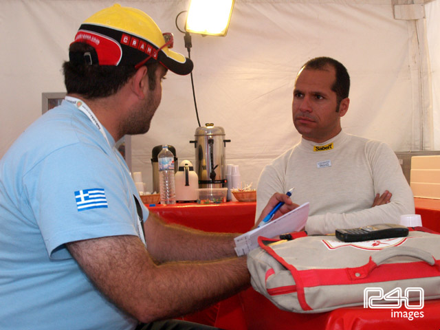 Με το που φτάνουμε στο Πόρτο Καρράς, σχεδόν όλοι οι πρωταγωνιστές ήταν εκεί, στο παρκ φερμέ, περιμένοντας να βάλουν τα αυτοκίνητα στο σέρβις, ώστε να αρχίσει η διαδικασία μετατροπής των αυτοκινήτων από ασφάλτινα σε χωμάτινα. Με τον Ανδρέα πάμε κατευθείαν στο σέρβις της PH Sport, όπου θα είχαμε την συνέντευξη με τον JJ. Και αφού ο Μαρτινικανός έκανε τα απαραίτητα τηλέφωνα του καθόμαστε στο τραπέζι και ξεκινάμε. Πάντα με το χαμόγελο στα χείλη, πολύ παραστατικός, μας απαντάει σε ότι είδους ερώτηση και απορία έχουμε. Γνήσιος επαγγελματίας.