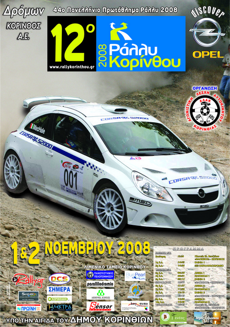 Το 12ο Οpel Δρόμων Ράλλυ Κορίνθου που διοργανώθηκε από την Αγωνιστική Λέσχη Αυτοκίνητου Κορινθίας και ήταν ο προτελευταίος γύρος του 44ου Πρωταθλήματος Ράλλυ Από τα 59 πληρώματα που πήραν εκκίνηση τα 31 κατάφεραν τα τερματίσουν μετά από 10 ειδικές διαδρομές και 99.1 αγωνιστικά χιλιόμετρα .
