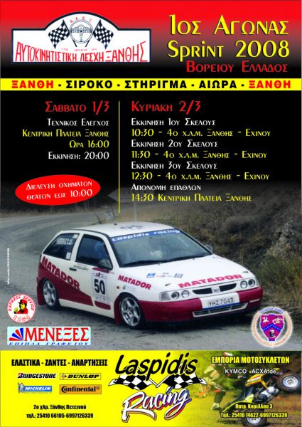 14 πληρώματα έχουν δηλώσει συμμετοχή στον πρώτο αγώνα ράλλυ σπριντ της Βορείου Ελλάδος για το 2008. Παρά το μικρό ενδιαφέρον είναι ελπιδοφόρο ότι βλέπουμε αρκετά νέα πληρώματα που άλλωστε έχουν ανάγκη να συμμετέχουν για την απόκτηση της απαραίτητης εμπειρίας μαζί με το σπριντ Κοζάνης που ακολουθεί για τη συμμετοχή σε αγώνες ράλλυ.