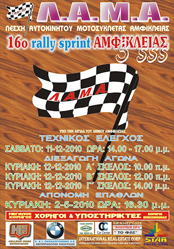 Στο πλευρό της λέσχης σε ρόλο συνδιοργανωτή είναι ο Δήμος Λαμιέων, ενώ ο αγώνας, τελεί υπό την αιγίδα της Περιφέρειας Στερεάς Ελλάδος. Ο αγώνας προσμετρά στο Κύπελλο Ασφάλτινων Ράλλυ Σπρίντ, στο Πρωτάθλημα Ιστορικών Αυτοκινήτων και περιλαμβάνει τρία ασφάλτινα σκέλη των 9.60 χλμ. |