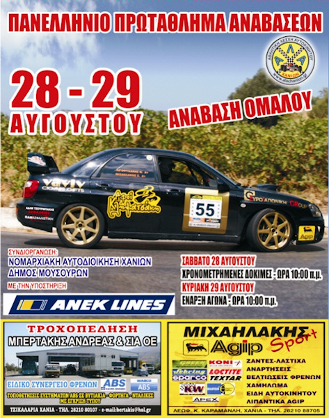 Η Αθλητική Λέσχη Αυτοκινήτου Χανίων ανακοινώνει ότι η προγραμματισμένη για τις 4 και 5 Σεπτεμβρίου 2010, 5η Ανάβαση Ομαλού, που είναι και ο πέμπτος γύρος του Πανελληνίου Πρωταθλήματος Αναβάσεων, θα πραγματοποιηθεί μία εβδομάδα νωρίτερα δηλαδή στις 28 κα 29 Αυγούστου. Να πούμε ότι η αλλαγή έγινε ύστερα από αίτημα μεγάλου αριθμού οδηγών και εγκρίθηκε από την ΕΘ.Ε.Α