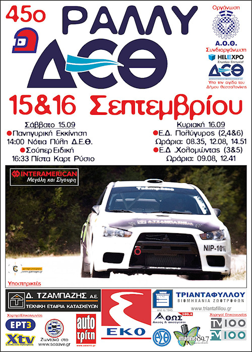 Από σήμερα Πέμπτη 16 Αυγούστου έως και την Τετάρτη 5 Σεπτεμβρίου, ο Α.Ο.Θ. θα δέχεται, όπως προβλέπεται από τον Ειδικό Κανονισμό, τις συμμετοχές για το 45ο Ράλλυ Δ.Ε.Θ. Με το γενικότερο κλίμα να επιδεινώνεται μέρα με την μέρα, το 45ο Ράλλυ Δ.Ε.Θ. αποτελεί πλέον όαση στα δρώμενα του μηχανοκίνητου αθλητισμού. Με εγγυητή τον Αυτοκινητιστικό Όμιλο Θεσσαλονίκης, ο αγώνας πρόκειται και φέτος να «σπάσει» κάθε τετριμμένη παράδοση, προσφέροντας σε αγωνιζόμενους και θεατές μάξιμουμ απόλαυση με μίνιμουμ οικονομική επιβάρυνση. |