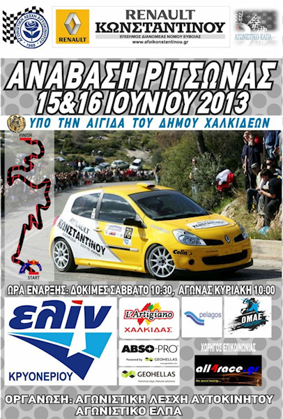 Στην γνωστή διαδρομή της Ριτσώνας , των 3,2 χλμ. , που κατά καιρούς έχει φιλοξενήσει δεκάδες χιλιάδες θεατές και σχεδόν 200 συμμετέχοντες, συνεχίζεται το Πανελλήνιο Πρωτάθλημα Αναβάσεων, το Σαββατοκύριακο 15 & 16 Ιουνίου. |