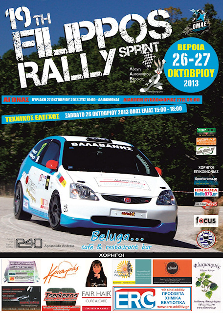 Το Σάββατο 26 και την Κυριακή 27 Οκτωβρίου θα διεξαχθεί το 19ο Ράλλυ Σπριντ «Φίλιππος». Ο αγώνας διοργανώνεται από την Λέσχη Αυτοκινήτου Βέροιας και περιλαμβάνεται στο Κύπελλο Ράλλυ Βορείου Ελλάδος 2013. Αποτελεί τον 5ο και τελευταίο από τους αγώνες του Κυπέλλου καθώς δεν διεξήχθησαν τα Σπριντ Πτολεμαΐδας (που αντικαταστάθηκε από το Σπριντ των Ιωαννίνων) και Κοζάνης.